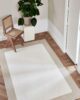 Ilda Rugs are Swedish plastic rugs framed to ground your space with bold lines, clean edges providing an instant structure to your home space. This rug’s crisp frame pattern brings definition to any space and draws the eye in and anchors your room — like a quiet border that pulls everything together. The structured border adds clarity and calm. its simple, striking, and totally versatile. Two moods. One rug. No Stress. This is the Ilda—designed in Sweden by Pappelina.